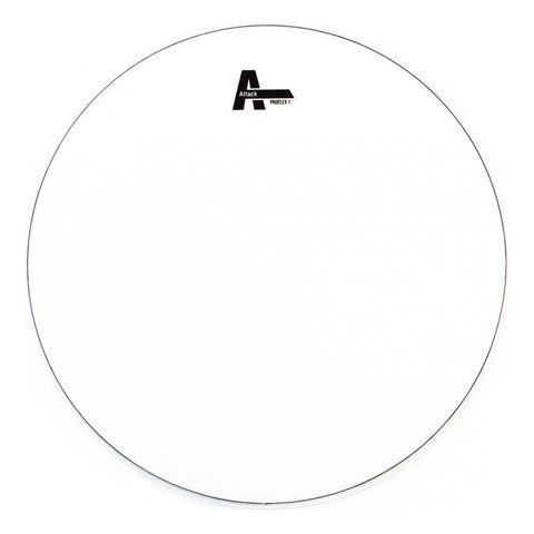 Attack DHA14 - 1 capa Medio transparente 14" Brillante con un largo decaimiento. Genial para cuando necesitas un poco de proyección extra. Ideal para cabezas resonantes de tom. La serie Proflex1 está fabricada con la popular película Dynaflex de 10 mil de Attack.