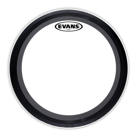 Parche de golpe para bombo de 18" pulgadas, serie emad2 clear, fabricado con doscapas de película, una externa de 6.5 y otra interna de 10 milésimas de pulgada, lo que proporciona un mejorado ataque y durabilidad, terminado transparente, permite ajustar el ataque y el enfoque, hecho en usa. Marca: EVANS Medida 18 Numero De Capas 2 Paquete NO Refuerzo Central NO Sistema Dry NO Sordina SORDINA EXTERNA Terminado TRANSPARENTE Tipo De Parche BOMBO