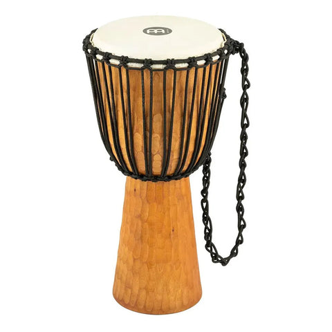 TAMBOR HEADLINER (DJEMBE) MOD. HDJ4-L Djembe de caoba escarbada (Swietenia macrophylla) tallado en una sola pieza, diámetro: 12" pulgadas, parches de piel de cabra seleccionada a mano, 20 cuerdas denylon PP pre-estirado de 5 mm de espesor, vasos tallados a mano. El clásico sonido de África. Estos hermosos vasos tallados a mano cuentan con una superficie escarbada que evoca agua con efecto de sol. Esta textura no solamente se ve bien, también hace que el djembe sea fácil de sostener entre las rodillas. Viene en 4 tamaños diferentes para percusionistas de todas las edades. Parches de piel de cabra seleccionados a mano se aseguran por el método sistema tradicional Mali Weave y corredores PP Rope de nylon pre estirado. Vistazo rapido Hecho con madera de caoba. La caoba es una madera muy noble, usada tanto en instrumentos como en carpintería debido a su durabilidad y belleza. Con gran respuesta al lustre y una proyección con graves marcados y con mucha resonancia. Tallado en una sola pieza de madera. Para fabricar el cuerpo del tambor, se toma una pieza completa de madera, la cual es escarbada con cuidado para dañar o agrietar la superficie, esto se hace para mantener su resonancia y tono claro. Diámetro. 12” pulgadas. Parches. Parche de piel de cabra seleccionada a mano. Cuerdas. 20 cuerdas de nylon pre-estirado de 5 mm de espesor. Material MAHOGANI (CAOBA) Medidas 12" PULGADAS IN Parches CUERO NATURAL Teminado GRABADO A MANO Tipo De Afinacion ROPED
